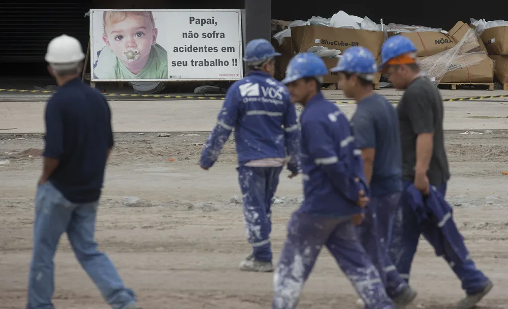 巴西重启上周两人死亡的体育场建设 - 彭博社