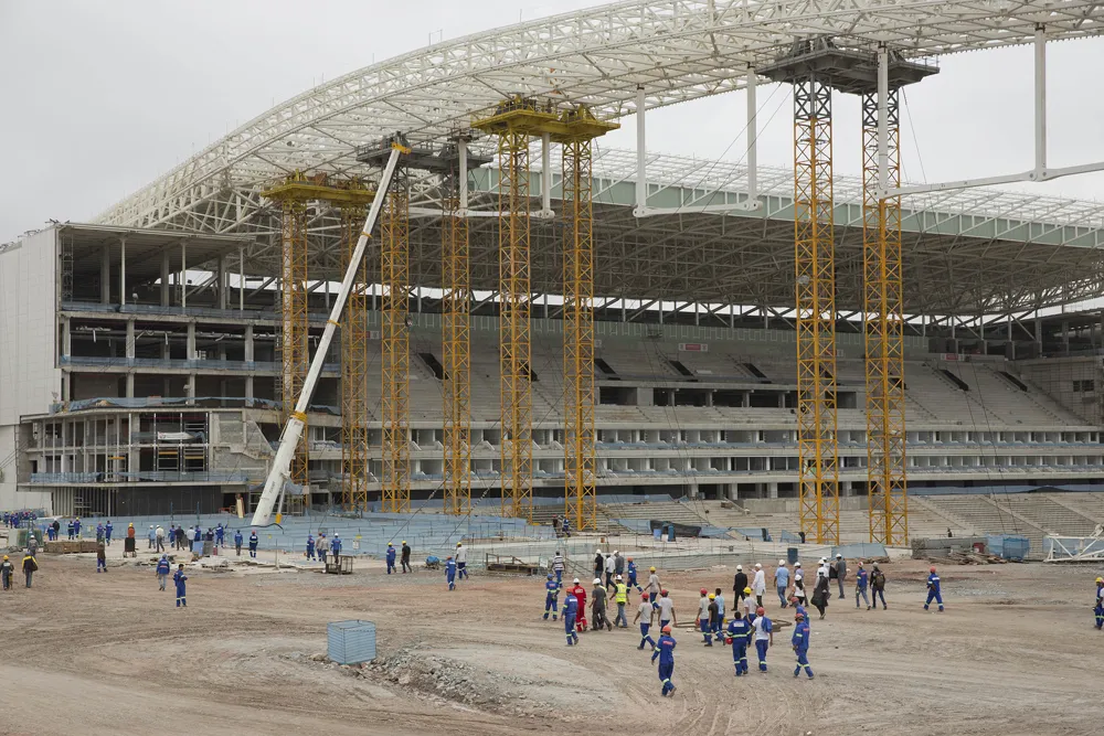 根据官员的说法,体育场已完成94%,但进度落后。现在,似乎确定将在国际足联给巴西的12月31日截止日期之后开放。超过100名工人在早班开始前聚集在一起,为上周在工作中遇难的两名男子祈祷。尽管工作现在已经恢复,但起重机倒塌的体育场部分仍然禁止进入。巴西劳动部禁止在现场使用剩余的九台起重机,直到施工公司证明已采取足够的安全措施。