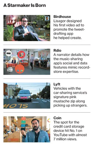 这位广告制作人偶尔在他的视频中出演——这是他在 Twitter 联合创始人 Jack Dorsey 的建议下开始做的。凭借他昏昏欲睡的神态、凌乱的头发、下垂的眼睛和啤酒肚,Lisagor 很容易被视为硅谷的极客和真正的信徒。他说他对创意广告奖不感兴趣——“创业文化已经足够自我庆祝”——而且虽然有朝一日执导一部电影可能会很有趣,但他真正的梦想是为 Apple 拍摄一则广告。几位创业客户表示,导演对科技术语的流利掌握是他们雇用他的决定性因素。“他就像隔壁的家伙,正在向你解释一些很酷的新东西,”Flipboard 的联合创始人 Marci McCue 说。