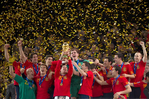 西班牙的塞尔吉奥·拉莫斯在2010年以0-1战胜荷兰后举起了国际足联世界杯奖杯。摄影:马修·阿什顿/科比斯周五,2014年世界杯的分组将被选出。显然,将32支球队分成八个小组需要一个 六步流程——一个非常奇怪的六步流程。部分内容似乎不太透明,留下了腐败的空间,而另一部分则涉及随机抽取的球。