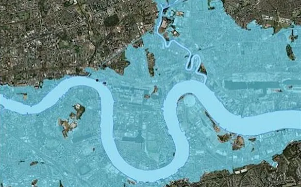 几乎所有位于金丝雀码头、皇家码头和格林威治半岛的土地都将被水淹没。