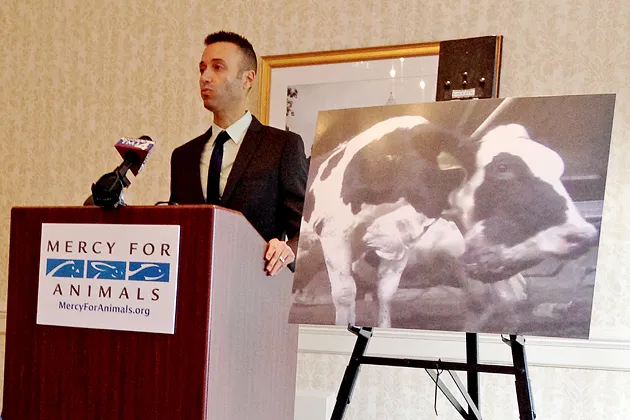 动物权利组织“动物的慈悲”发言人阿里·所罗门于12月10日在密尔沃基的新闻发布会上谈论在威斯康星州格林里夫的维斯兄弟农场进行的秘密调查结果。照片由米歇尔·L·约翰逊/AP照片提供一位DiGiorno比萨的奶酪供应商将停止从一处动物虐待曝光中心的农场购买牛奶,这是一个最新迹象,表明以前边缘化的对人道对待牲畜的关注已成为食品生产商和快餐连锁店的真正问题。