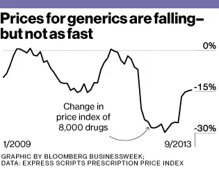 根据仿制药协会的数据,非专利药物在2011年为美国患者节省了1930亿美元,自2002年以来节省了超过1万亿美元。然而,根据Express Scripts Holding的说法,它们的成本控制效果在今年明显减弱,后者是美国最大的处方药索赔处理机构。其最常开处方的仿制药价格指数显示,价格下降的年率在九月份减缓至14%,而一月份为30%。