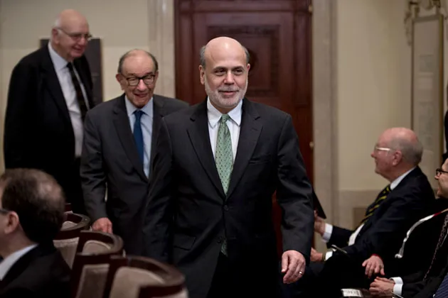 沃尔克、格林斯潘和伯南克齐聚庆祝美联储百年华诞 - 彭博社