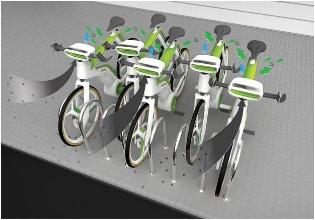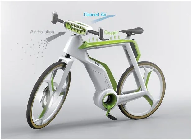 空气净化自行车配备了一个空气过滤器,可以筛选空气中的灰尘和污染物,一个光合作用系统(包括一个水箱)来产生氧气,一个电动机和一个电池。在骑行时,空气通过自行车前面的过滤器,经过清洁后释放到骑行者身上。自行车框架内置光合作用系统。当自行车停放时,空气净化功能可以在电池供电下继续运行。