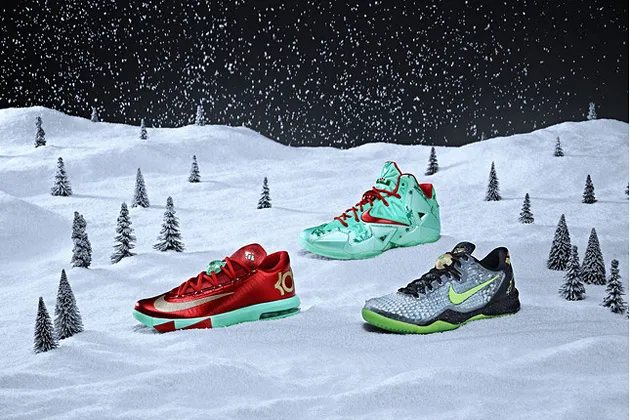 耐克已推出 签名圣诞鞋,为勒布朗·詹姆斯、凯文·杜兰特和科比·布莱恩特这三位明星球员设计。这些新鞋将在12月25日的NBA比赛中穿着,并将在第二天上架——当然,数量有限。詹姆斯的鞋子采用薄荷绿色设计,配有雪花,布莱恩特的鞋子似乎是用蛇皮制成的,而杜兰特的鞋子则呈现出纯粹的节日气息,鲜艳的樱桃红色与绿色鞋底形成对比。