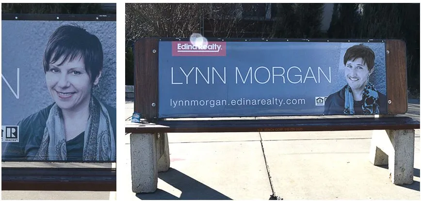 明尼阿波利斯的房地产经纪人正发生一些奇怪的事情。他们在公共长椅上放置自己的广告,就像这个: