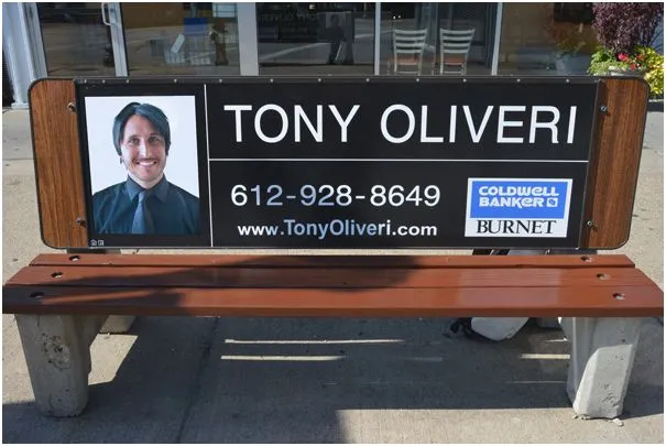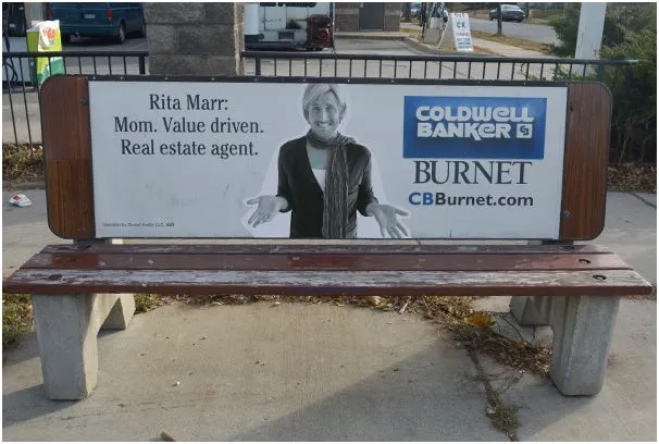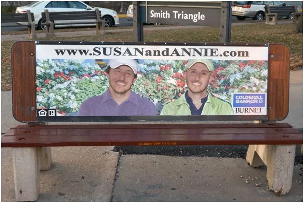 明尼阿波利斯的房地产经纪人正发生一些奇怪的事情。他们在公共长椅上放置自己的广告,就像这个: