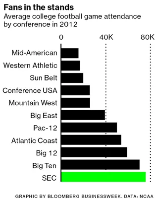 东南会议的良性循环始于需求。它的橄榄球队在体育场中拥有最多的球迷: