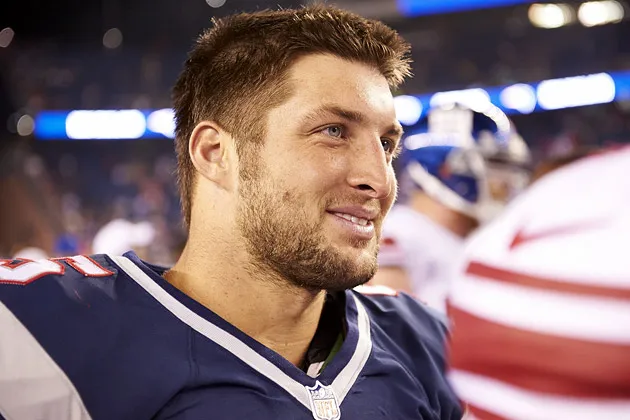 蒂姆·特博在马萨诸塞州福克斯伯勒的吉列体育场进行季前赛后的比赛摄影:大卫·伯格曼/体育画报通过盖蒂图片社世界上最著名的失业四分卫不再失业。