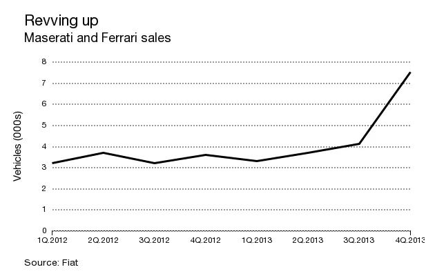 菲亚特希望在2015年前将玛莎拉蒂的销量提升到50,000辆。吉卜力自去年九月开始销售,价格相对亲民,为65,600美元,是该计划的关键。不仅在窗贴上缺少那令人痛苦的第六位数字,而且评论家们也非常喜欢它。汽车与驾驶杂志 称其为 “与高度能干但紧密缠绕的德国思维方式相比,令人耳目一新的突破。”