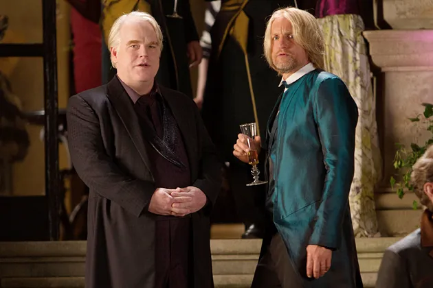 霍夫曼(左)和伍迪·哈里尔森在饥饿游戏:燃烧的女孩照片由穆雷·克洛斯/狮门影业通过埃弗雷特收藏提供在好莱坞的商业和其10亿美元的大片中,预见人类脆弱的严峻工作是制作电影所需的一部分。演员菲利普·西莫·霍夫曼在周末因明显的药物过量而去世,这种意外的损失是制作人及其保险公司必须准备和应对的。