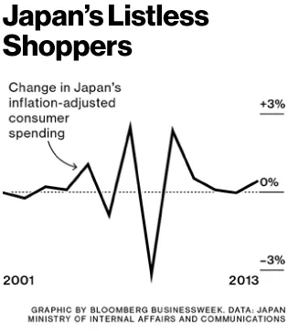 在过去15年中,工资下降了15%。截至2013年11月的11个月中,平均工人的工资仅上涨了0.2%。家庭的实际收入在12月比去年下降了1.7%。基础工资(不包括加班和奖金)在12月下降了0.2%,这是连续第19个月下降。富士通研究所的经济学家马丁·舒尔茨表示,工资问题“是安倍经济学是否有效或崩溃的试金石。”