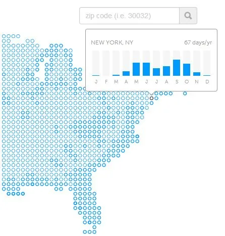 你可以通过滚动查看互动地图来获取“宜人度”每月变化的详细数据。东北部的人们,请振作:虽然你们的街道现在可能被雪堵住,但距离九月只有207天!