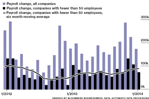 • 本周由小企业管理局倡导办公室发布的就业报告预计2014年小企业招聘将强劲。 • 根据BLS的数据,非公司自雇工人和无薪家庭工人的失业率在上个月为5.2%,低于2013年1月的5.8%。