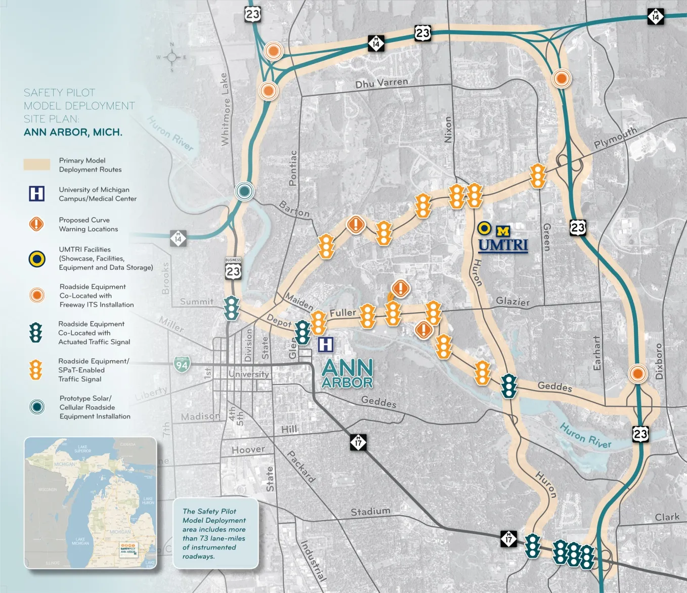 “这是世界上最大的车对车技术部署,”美国智能交通协会的首席执行官斯科特·贝尔彻说,该协会是UMTRI的成员。