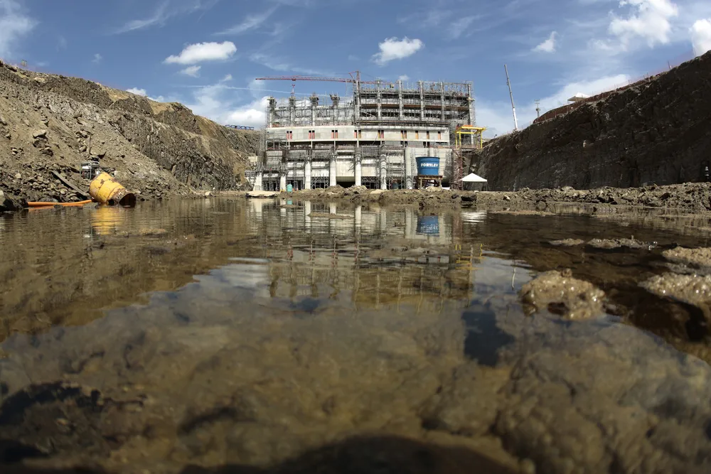 一座泵站的建设全景,位于正在修建的运河的起点,以引导水流从圣弗朗西斯科河,2014年1月24日。路透社/乌斯莱·马塞利诺