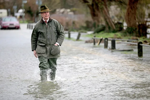 英国独立党领袖法拉奇在萨里巡查被淹的房产摄影:克里斯托弗·弗朗戈/盖蒂图片社英国正经历着它的“飓风桑迪”时刻。数周的不间断降雨使得英格兰西南部大片地区被淹,而随着泰晤士河谷水位上升,伦敦地区正准备迎接近期记忆中最严重的洪水。