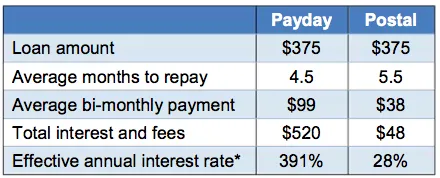 “在资金紧张的邮局试图插手支票兑现业务中存在一种讽刺。”这些服务不足的家庭——约占人口的四分之一——在2012年共支付了890亿美元的替代金融服务的利息和费用。这相当于每个家庭2412美元,几乎占平均服务不足家庭收入的10%。相比之下,论文指出,2012年申请破产的人平均仅差26美元就能满足他们的月度开支。
