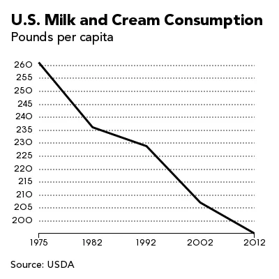 学校购买大量牛奶。根据 国家乳制品委员会的数据,在2012财年,美国学校提供了4.03亿加仑牛奶,价值约为13.5亿美元,作为美国农业部学校餐饮计划的一部分,该计划包括早餐、午餐、特殊牛奶计划和夏季食品服务计划。