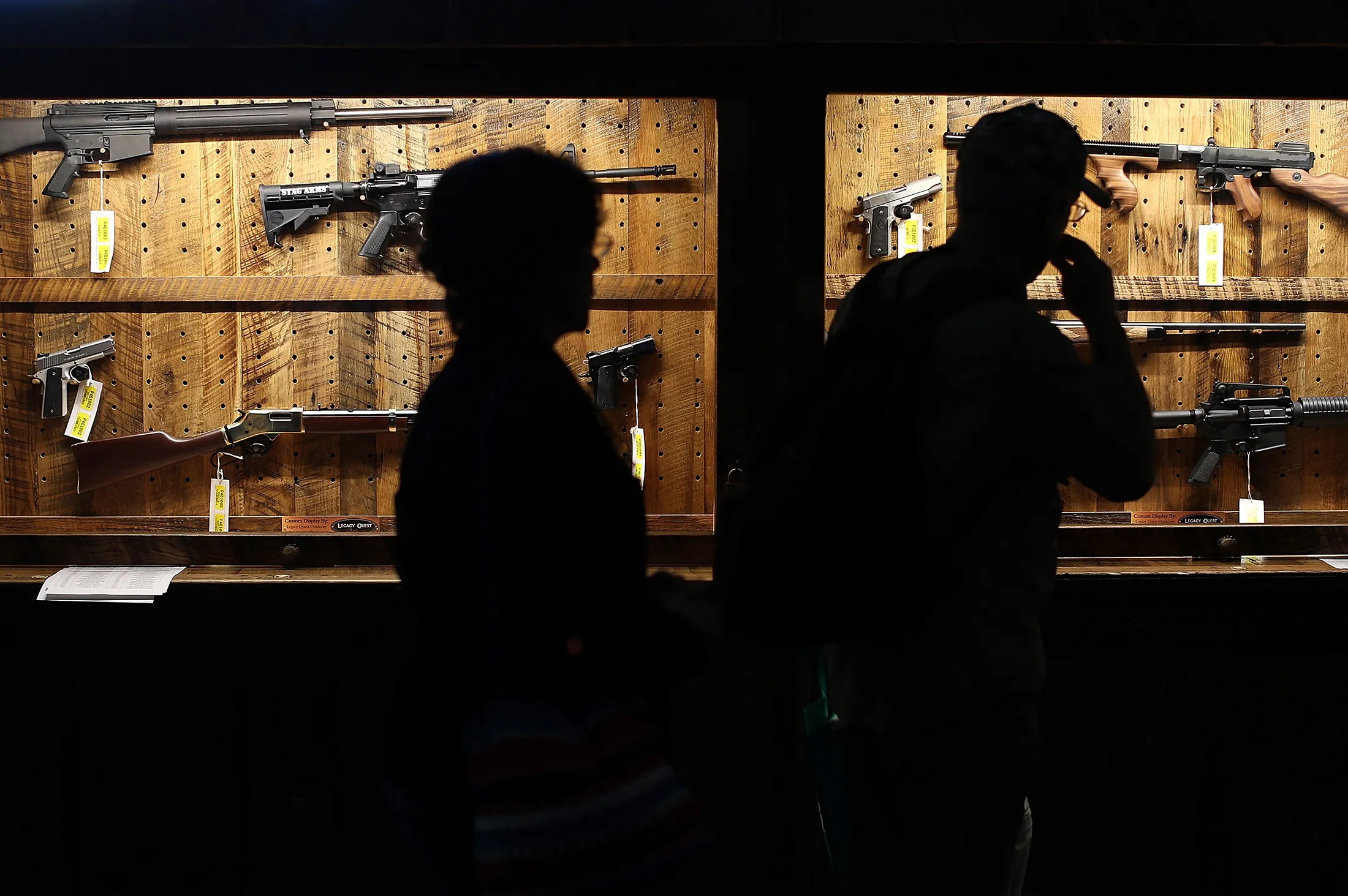 与会者在2013年5月4日于休斯顿乔治·R·布朗会议中心举行的2013年全国步枪协会年会和展览上观看“枪械墙”。