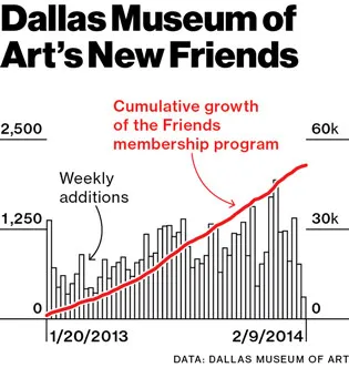 自2013年1月推出该项目以来,博物馆已注册超过50,000名DMA朋友,即免费会员。它每周继续增加超过1,000名朋友。在推出免费会员之前,博物馆有18,000名付费会员。