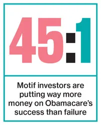 最引人注目的不是这两个基金的表现,而是投资者选择将资金放在哪里。“我们对法律本身没有信念或看法,”瓦利亚说。“我们给你方程式的两面。”但显然有一方更受欢迎:他说,Motif的投资者在奥巴马医改成功上的投资是其失败的45倍。