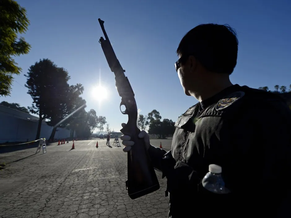 顶部图片:洛杉矶警察局的一名成员在枪支回购活动中检查枪支。路透社/凯沃克·詹塞齐安
