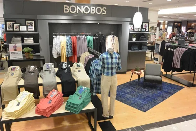 Belk百货商店内设有Bonobos专卖店感谢Bonobos和BelkBonobos最初以精简的电子商务宠儿而引起关注,但这家年轻的企业显然不会被任何特定的外观所束缚。现在它正在通过百货商店的分销来壮大,并在其已经丰富的产品线中增加衬衫。