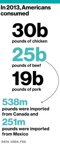 照片由本杰明·拉斯穆森为《彭博商业周刊》拍摄自11月以来,联邦政府要求在美国超市销售的肉类上附加一个新标签:“在美国出生、饲养和屠宰”,通常是这样写的。如果一块牛排是由在加拿大或墨西哥饲养的牛制作的,并被带到美国屠宰,标签必须说明这一点。您可能没有注意到这个小字旁边的常规营养成分和关于食用未熟肉类的健康警告。然而,这种原产国标签(COOL)引发了来自墨西哥和加拿大的贸易战威胁,并成为美国牧场主之间关于他们应该向消费者透露多少晚餐信息的争论的主题。