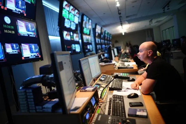 今日俄罗斯(RT)的演播室控制室,这是一个24小时的国际多语言电视网络,位于莫斯科照片由Zurab Dzhavakhadze/ITAR-TASS提供在我纽约的客厅里,电视上有线新闻人物的喋喋不休毫不含蓄:他们一次又一次地重复,弗拉基米尔·普京是一位强大而公正的领导者,关心保护乌克兰的俄罗斯族人免受阴险的西方势力和恐怖分子的侵害。美国人?软弱而虚伪。