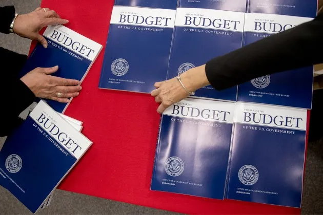 政府印刷局工作人员在华盛顿的GPO书店整理总统巴拉克·奥巴马2015财年的预算副本,时间是3月4日摄影:安德鲁·哈雷尔/彭博社周二早上,白宫公布了其2015财年的39万亿美元预算。虽然许多细节是新的,但预算的整体方向在两周前就已显现,当时有消息泄露称,奥巴马总统不会像以前的预算那样提出 削减社会保障生活成本福利(通过转向所谓的链式消费者价格指数)。这被视为白宫放弃与共和党达成“重大协议”以削减赤字和福利项目的希望的信号。