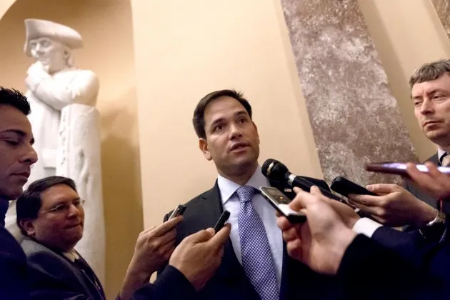 鲁比奥参议员在华盛顿国会山与记者交谈照片由J. Scott Applewhite/AP Photo提供昨天,彭博新闻的医疗保健记者亚历克斯·韦恩注意到新的白宫预算包括55亿美元的潜在支付给在奥巴马医改下遭受损失的保险公司——这一情景被佛罗里达州参议员马尔科·鲁比奥等共和党人称为“救助”。