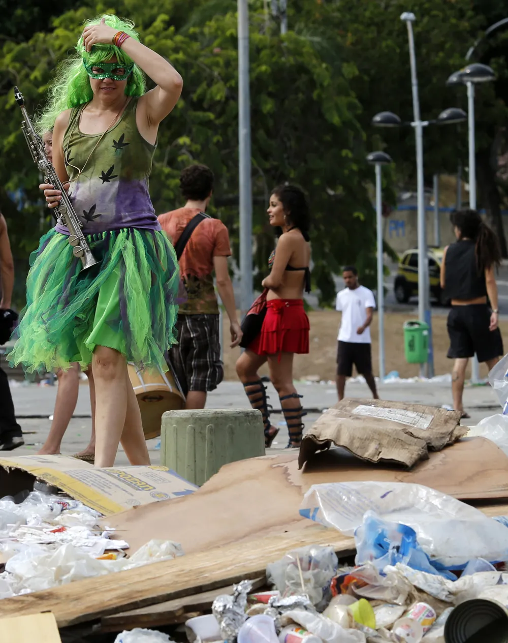 路透社里约上周五庆祝了狂欢节的第一个夜晚,狂欢者们第二天早上醒来时发现自己制造的垃圾依然在那。此后情况并没有好转。