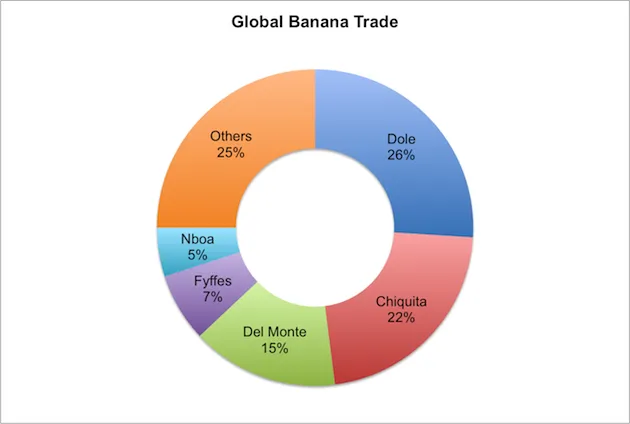 多尔的全球市场份额约为四分之一。根据2011年来自英国非营利组织香蕉链接的数据,奇基塔的年香蕉销售额为20亿美元,占22%,而费夫斯约占7%。