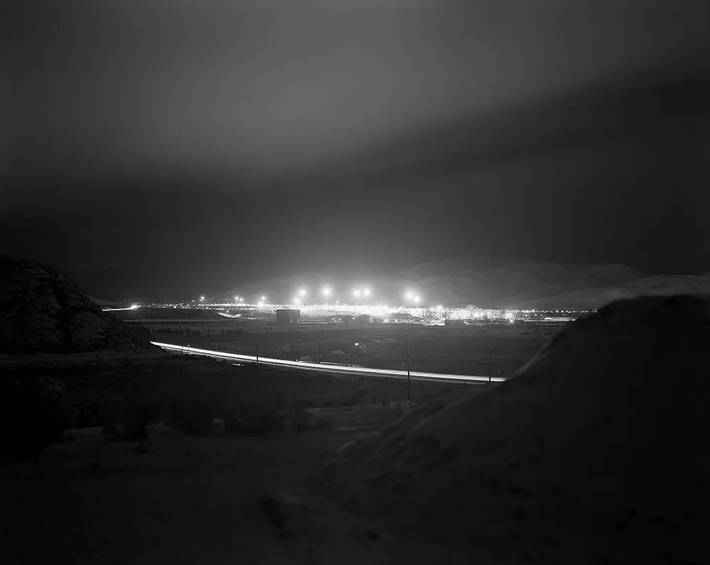 对大多数人来说,监狱存在于我们意识的边缘,许多它们所在的地方也是如此。然而,在夜晚,从远处看,这些地方在景观中显得格外突出。在那些曾经繁荣的城镇的边缘,看到这些闪烁的灯光是非常常见的。它们所处的景观对我来说很重要,因为现代监狱往往看起来相当千篇一律,这些高度监控地方的照明反过来又渗透到景观的褶皱中,形成一种可见的反馈,往往将监狱的边界连接或延伸到我们这些超越其墙壁的人身上。