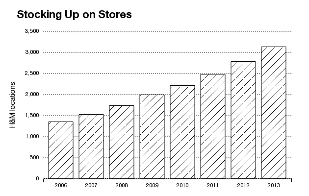 根据 公司今天早上的财务更新,这家快时尚帝国在过去一年中新增了374个实体店,使其总数接近3200家。正如瑞典零售商喜欢指出的那样,这相当于每天开设一家新的H&M,而今年的剪彩仪式数量也相似,包括在澳大利亚、印度和菲律宾的首家门店。
