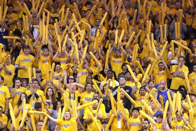 金州勇士队的球迷在2013年5月12日于加利福尼亚州奥克兰举行的NBA西部会议半决赛对阵圣安东尼奥马刺队时摄影:杰夫·丘/AP照片一些购买了高价票的球迷在走下奥克兰甲骨文体育馆的自动扶梯时,收到了手机的友好建议:他们是否想花几美元买一个可以真正区分斯蒂芬·库里和安德鲁·博古特的座位?