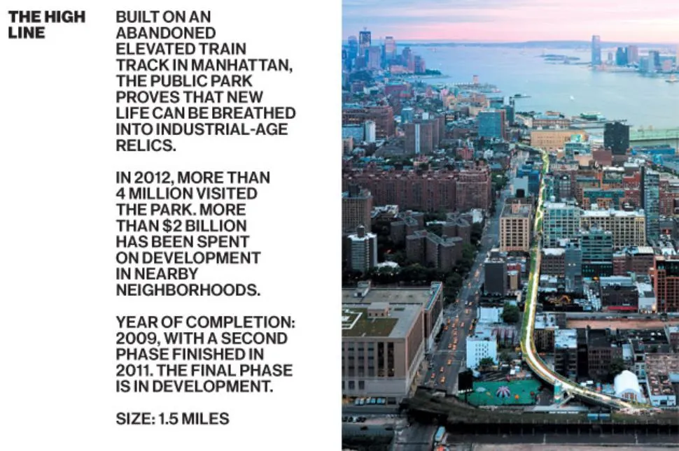 迪勒目前正在进行哈德逊园区的重新开发,这个项目源于DS+R对高线公园的工作,高线公园是从曼哈顿下城延伸到西侧中城的高架铁路。几十年前被遗弃,城市计划将其拆除。但社区活动家接过了这个事业,DS+R将这条铁路重新构想为一个公共公园。“这开始时是一个1.5亿美元的项目,”迪勒说,她努力说服政治家和附近的商家高线公园是个好主意。“它催生了大约数十亿美元的纽约周边开发。”这也激励了世界各地的数十个地方政府考虑如何重新利用现有基础设施。迪勒对这个项目的成功感到惊讶和高兴。她怀念第一次走在高线公园上的非法刺激——那时进入是违法的——但她欣赏这个公园作为“从不同的视角以非常不同的方式看待城市的机会。”