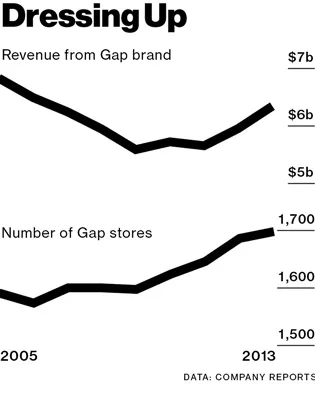 在2002年Drexler被解雇后,Fisher引入了他的对立面。Paul Pressler曾担任华特迪士尼的游乐园和度假区部门的主席,对时尚或创意过程知之甚少。他相信市场研究和成本控制;在美国经济繁荣的背景下,Gap的销售额却连续几个季度下滑。(该公司还拥有Banana Republic和Old Navy,并且后来增加了Piperlime、Athleta和Intermix。)在2007年初,经过又一个令人失望的假日季节,Pressler辞职。“他们曾让卡其裤变得时尚,但后来你可以在任何地方找到卡其裤。他们成为了自己成功的受害者,”独立零售分析师Marie Driscoll说。“他们的品牌变得毫无意义。”