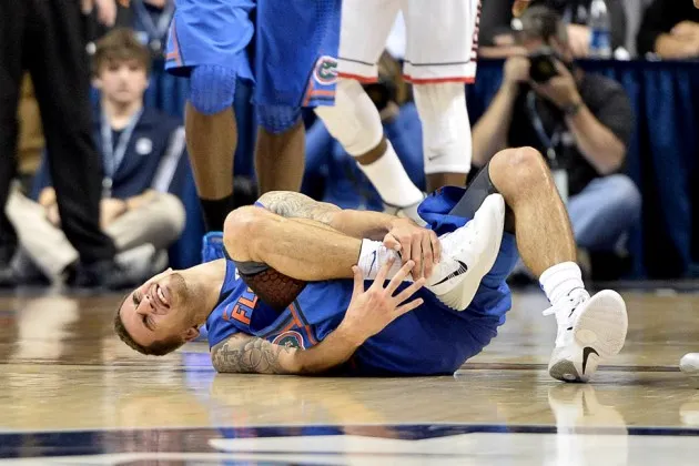 佛罗里达大学盖托斯队后卫斯科蒂·威尔贝金在2013年12月2日康涅狄格州斯托尔斯的一场NCAA篮球比赛中扭伤脚踝后痛苦地皱眉摄影:比尔·谢特尔/科比斯在周末,数百万电视观众收看三月疯狂时,可能会看到一名大学运动员起身争抢篮板并不慎落地,导致他的脚踝翻转到鞋子的外侧。这名篮球运动员将痛苦地扭动,观众在着迷与想要移开视线的冲动之间感到纠结。