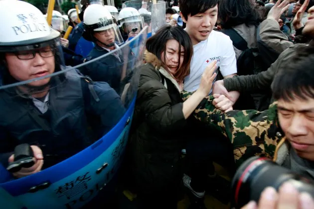 批评者表示,马政府违背了逐条审查协议的承诺。总统并没有妥协,在周一的清晨,防暴警察向抗议者发射水炮,以驱散他们离开位于台北的内阁总部。警方逮捕了约60人,彭博新闻报道,总共有110人——示威者和警察——受伤。但学生们仍在占领立法机构。