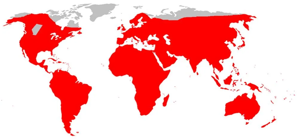 Shutterstock.com几天前,一张地图出现在 Reddit 上,声称显示了 棕色老鼠的分布,也就是下水道鼠或“普通”老鼠。它们的领土用深红色标记,似乎无处不在,侵扰着除了南极洲以外的每一个大陆,仅在某些北方地区缺席: