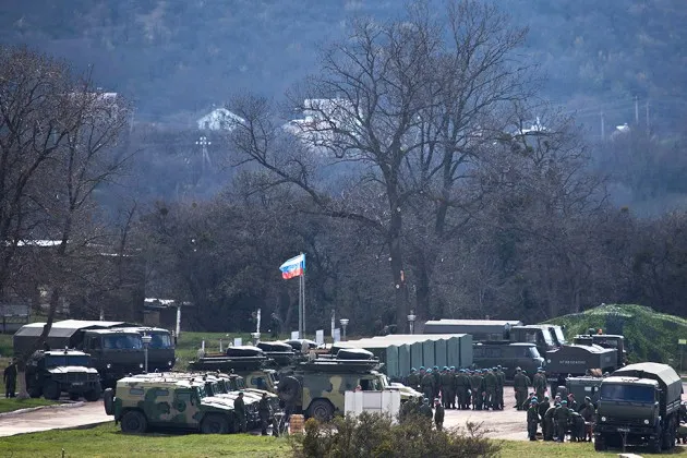 一面俄罗斯国旗在俄罗斯军队上空飘扬,他们在克里米亚辛菲罗波尔附近的前乌克兰军事基地佩列瓦尔内集结,时间是3月27日摄影:帕维尔·戈洛夫金/AP照片谈到乌克兰,中国官员有些为难。一方面,他们不喜欢美国对其他国家的指责,他们认为美国对俄罗斯就是如此。他们也并不反对看到其他国家对美国表示蔑视。另一方面,允许克里米亚投票决定自己的未来为那些在西藏和台湾的人设立了一个危险的先例,他们希望与大陆毫无关系。