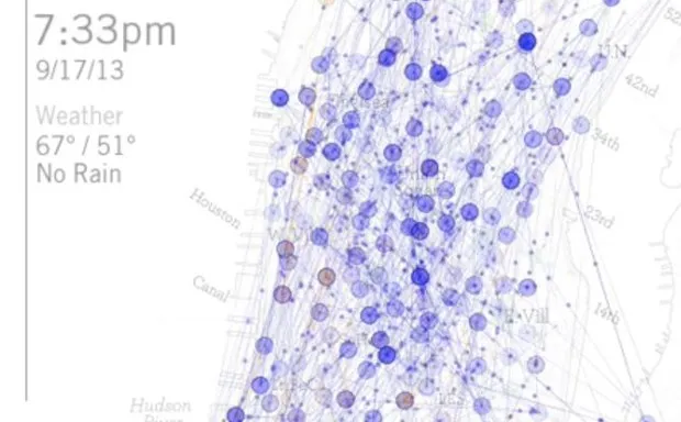 杰夫·费尔佐科纽约市的某个人骑上了一个 Citi Bike;几分钟内,他们可能会在任何随机方向的几个街区之外。但将成千上万这样的骑行汇聚在一起,国家最大的共享单车系统中的模式便跃然纸上。