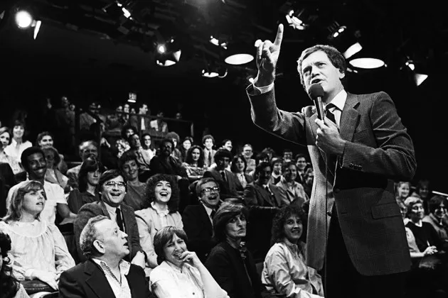 大卫·莱特曼在1982年纽约录制节目之前为他的NBC演播室观众热身摄影:乔治·罗斯/盖蒂图片社在67岁即将到来之际,大卫·莱特曼表示他准备明年退休。他的观众中大多数年长的婴儿潮一代也正准备在自己的职业生涯中做同样的事情。
