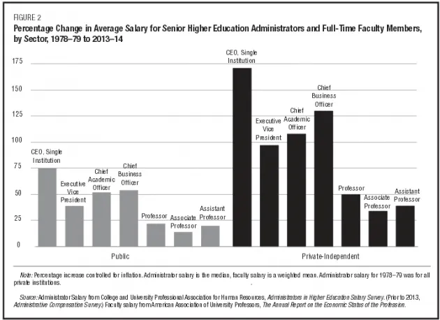 坏的例子。 AAUP一直在抱怨膨胀的行政人员薪资近25年——足够长的时间来提出反驳反驳的论点。“一些评论员曾辩称,许多校长所支付的过高且迅速上升的薪水对机构预算的影响微不足道,”柯蒂斯和桑顿写道。这可能是事实,但“支付给高级行政人员的薪水具有高度象征意义。”