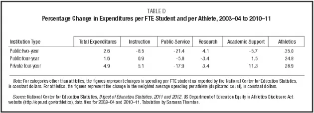 糟糕的选择。 根据柯蒂斯和桑顿的说法,1939年,芝加哥大学校长罗伯特·梅纳德·哈钦斯决定体育在大学生活中应占较小的角色——他们给人的印象是,这一决定可能代表了美国学术领导力的巅峰。无论如何,哈钦斯对大学间体育的看法早已不再流行。从2003-04学年到2010-11,私立四年制大学在每位学生的教学支出上增加了5.1%。在同一时期,按运动员计算的体育支出则增加了28.9%。
