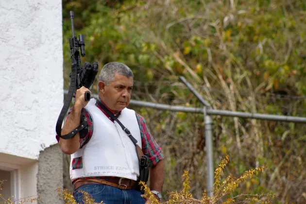 维瓦斯在加拉加斯——武装并穿着防弹背心——在二月份照片由胡安·曼努埃尔·埃尔南德斯/AP照片提供关于对峙的消息以一条准备好好莱坞风格的推文传来:“古巴和委内瑞拉的暴徒,以及犯罪团伙,正朝我家赶来。”