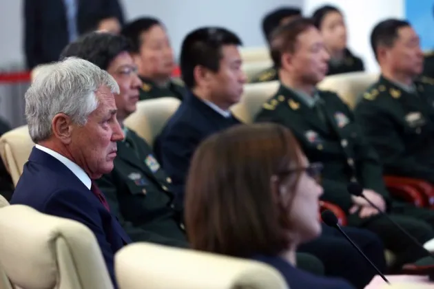 哈格尔可能希望在他们对东海一系列无人岛屿的争端中看到中国的某种灵活性,但常万全表示他不应该抱有这种期望。“我们不会容忍这些被侵犯,”中国国防部长宣称,“哪怕是一点点。”